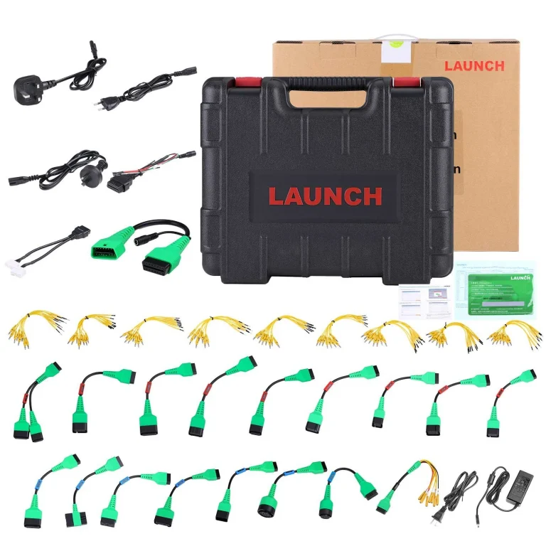 Pachetul conține dispozitivul de diagnostic LAUNCH X431 PRO3 ACE și kitul EV Launch X431 (extensie pentru diagnosticarea bateriilor electrice de nouă generație).
