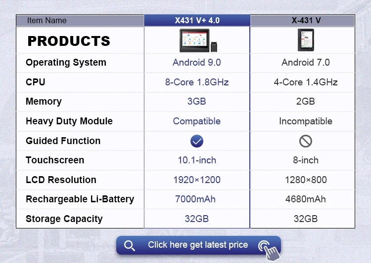 Specificațiile X431 V+ 4.0: