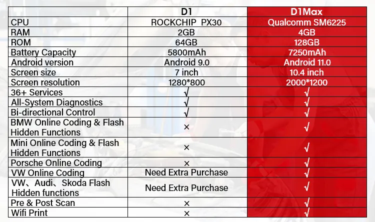 Pe lângă unitatea motorului, sunt suportate și transmisii automate, ABS, airbaguri, tabloul de bord și alte unități ale mașinii. Dispozitivul are o baterie încorporată cu o capacitate de 7.250 mAh. Prețul dispozitivului include actualizări timp de 2 ani.