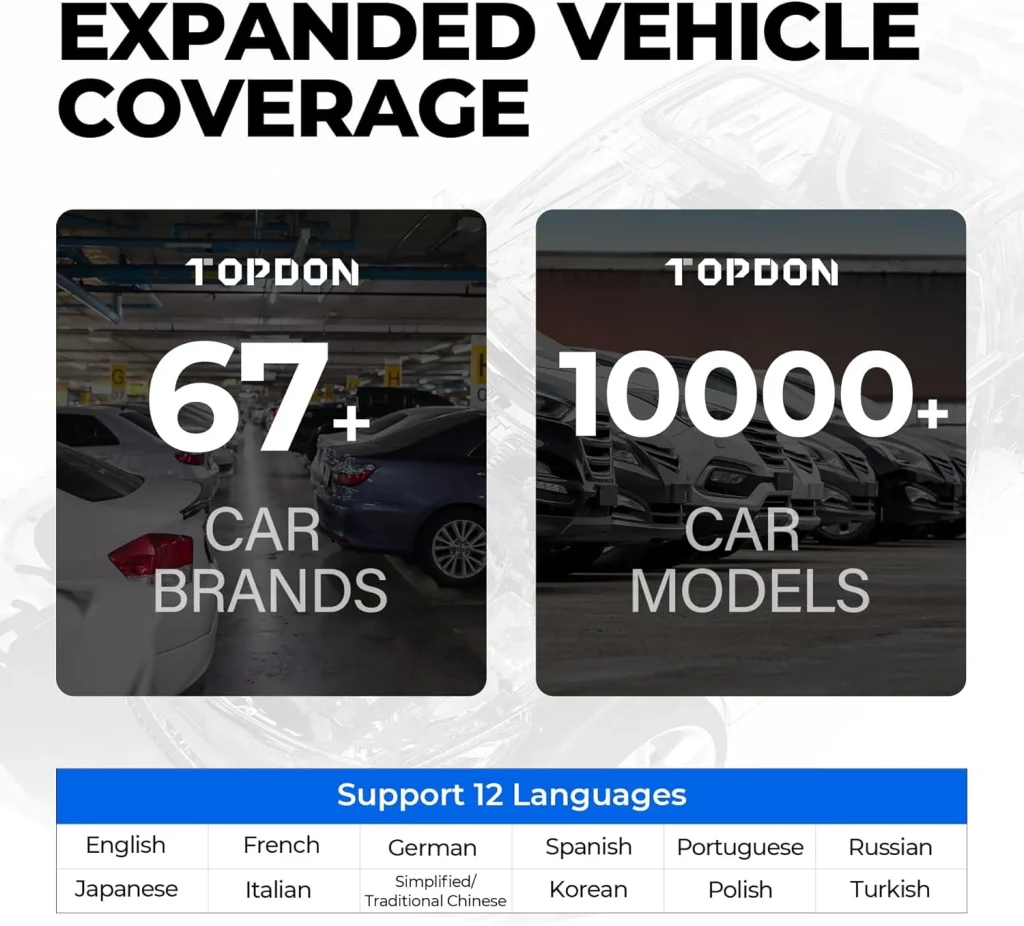 Suportă diagnosticare OBD2 completă și este compatibil cu peste 67 de mărci auto.