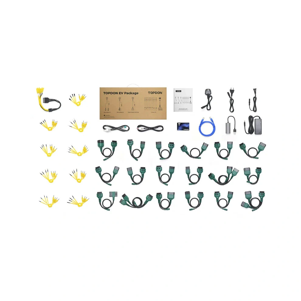 TOPDON EV Kit este un pachet de extindere pentru diagnostic, dezvoltat special pentru vehicule electrice, care permite service-urilor auto să efectueze verificări eficiente și sigure ale sistemelor EV. Kitul este compatibil cu echipamentele de diagnostic TOPDON Phoenix Max și Phoenix Smart, extinzând semnificativ funcționalitatea acestora în domeniul vehiculelor electrice.