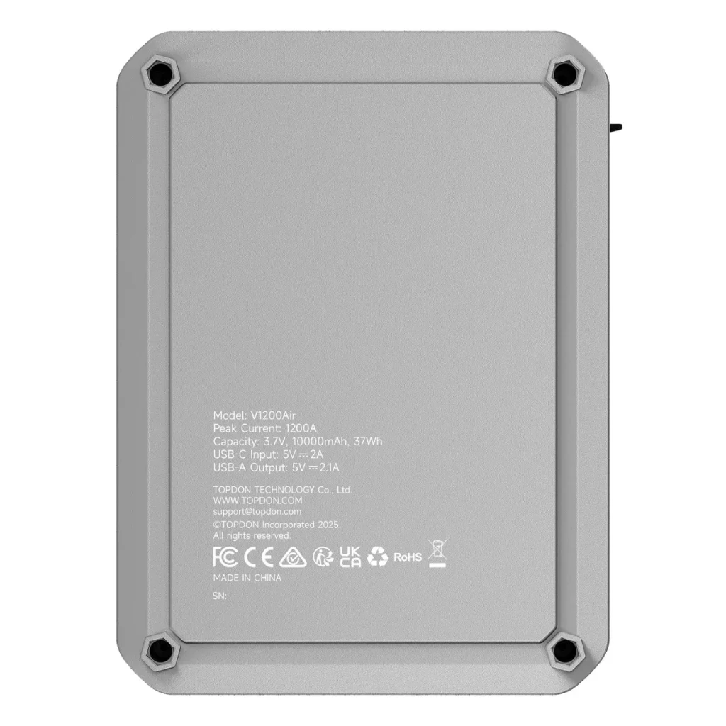 TOPDON V1200Air este un dispozitiv compact și versatil care combină starter auto, compresor de aer, lanternă LED și power bank într-un singur echipament. Oferă o soluție practică pentru situații neprevăzute pe drum, precum baterii descărcate, presiune scăzută în anvelope sau încărcarea dispozitivelor mobile.
